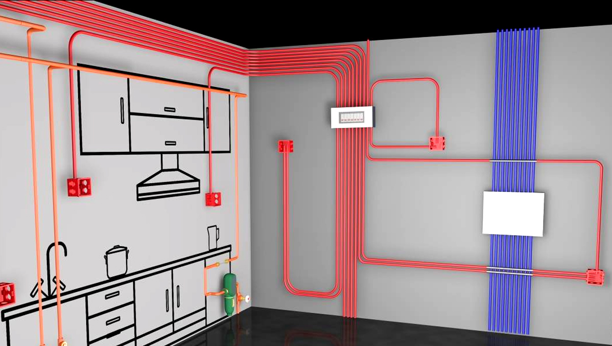 紅色是強電,用電線;藍色是弱電,用于電話線網(wǎng)絡,不同顏色實現(xiàn)強弱電線路專業(yè)防護。